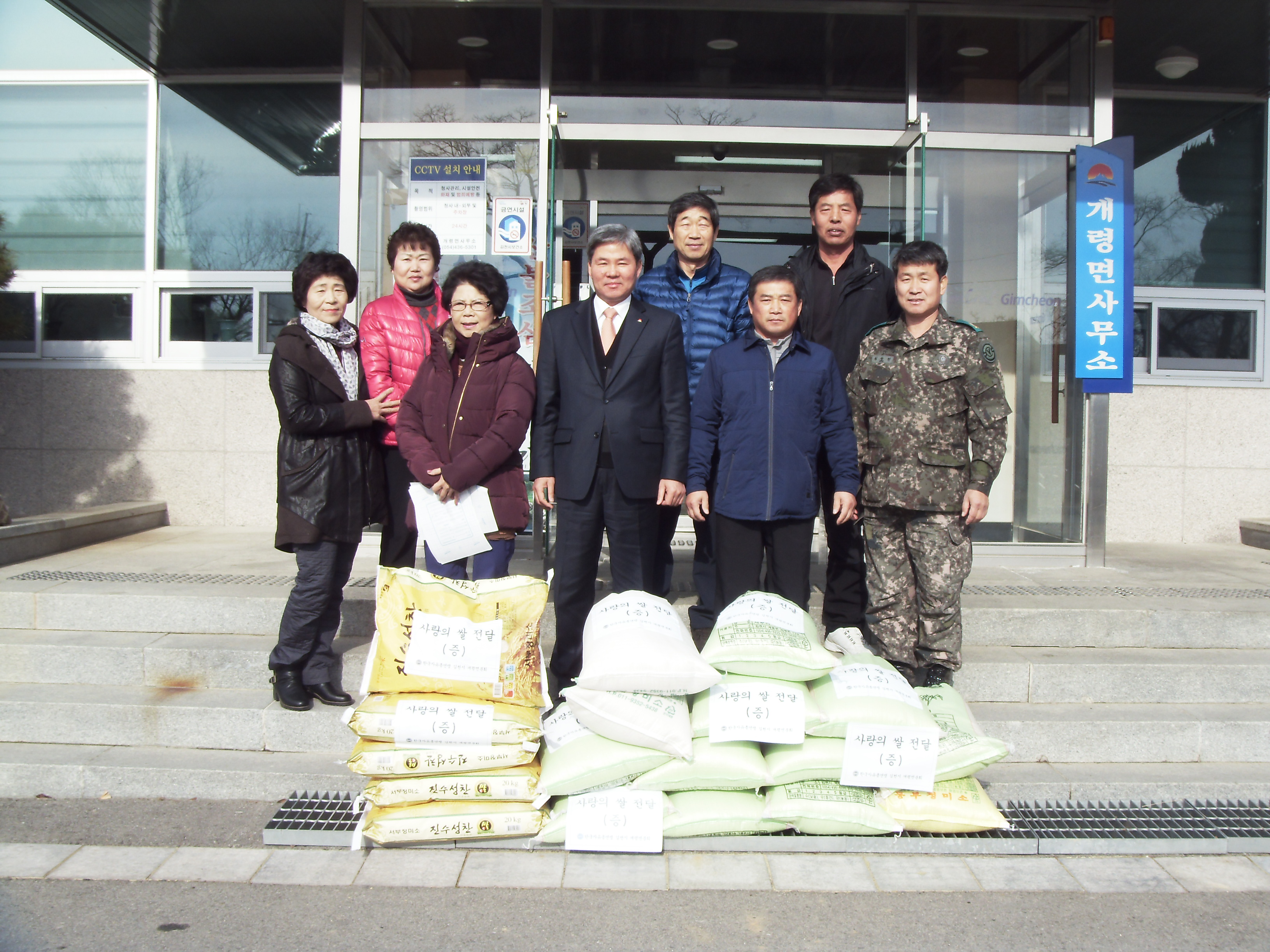 이날 사랑의 쌀 전달은 강희수 개령면분회장 및 회원들이 직접 농사를 지은 쌀을 십시일반으로 400kg상당 모아 개령면 관내에 생활이 어려운 참전용사 5명, 육군제5837부대에 복무중인 장병 5명에게 20kg 쌀 각2포대씩 전달했다.