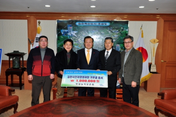 지난 12월 24일 접견실에서 위동철 빗내농악보존회 회장은 우수한 인재육성에 조금이나마 보탬이 되고자 김천시인재양성재단에 1백만원을 기탁하게 됐다고 말했다.