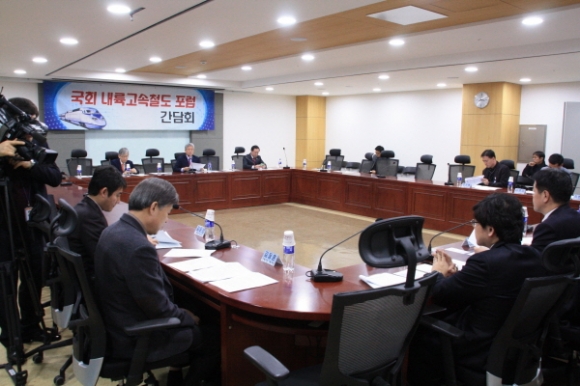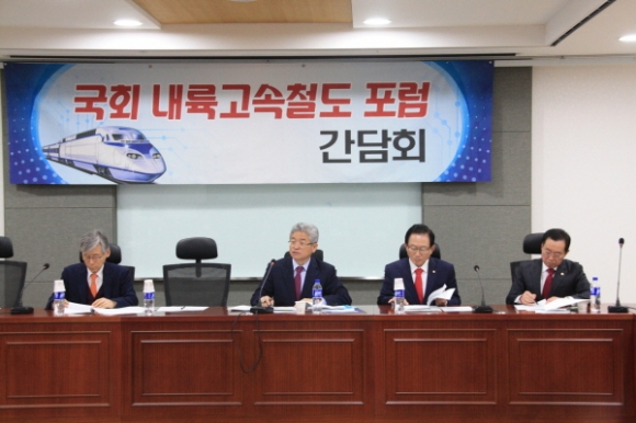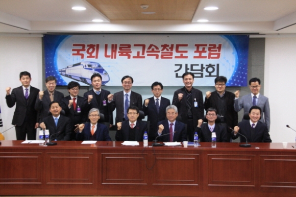국회 내륙고속철도포럼(회장 이철우 의원)은 29일 국회에서 제3차 국회내륙고속철도포럼 감담회를 갖고 현재 진행 중인 중부내륙선의 원활한 공사진행과 김천-거제간 남부내륙고속철도의 조속한 건설을 위한 대통령 공약이행을 강력히 촉구했다.