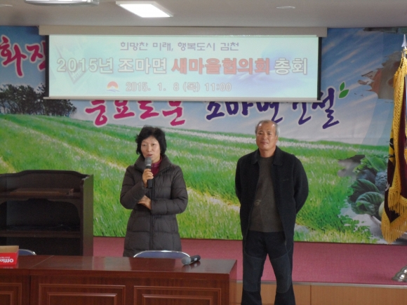 이날 총회는 조마면 새마을협의회의 2014년도 사업결산과 2015년도 운영 방안 등을 논의하고 남녀회장 등 임원선출을 위해 실시되었다.