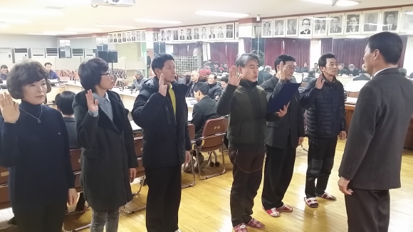 한편 이장협의회는 2015년을 이끌어 나갈 새로운 임원진으로 김동수 회장, 박희병 부회장, 박석현 총무, 진일권 감사를 선출하여 새 마음 새 결의로 지역발전을 위해 노력할 것을 결의했다.