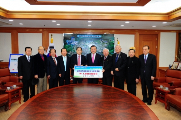 사단법인 대한노인회 김천시지회(지회장 이상덕) 회장단은 지난 13일 김천시청을 방문하여 김천시인재양성재단(이사장 박보생)에 장학기금 1백만원을 기탁했다.