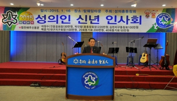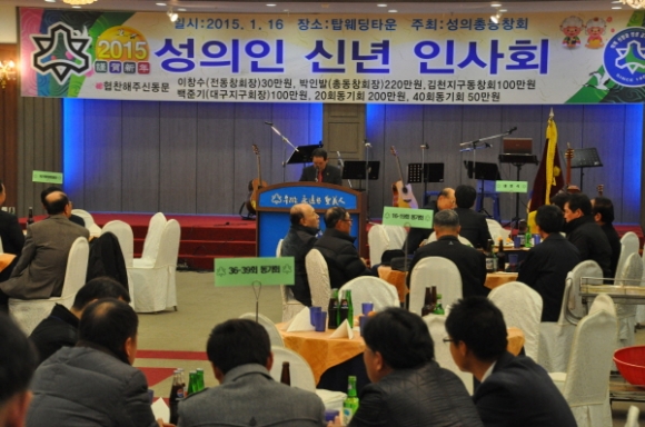 김천성의고등학교 총동창회(회장 박인발)는 지난1월16일 원근각처에서 선후배,동문 300여명이 참석한 가운데 “2015년 성의인 신년 인사회”가 탑웨딩 별관 3층에서 성황리에 개최됐다.