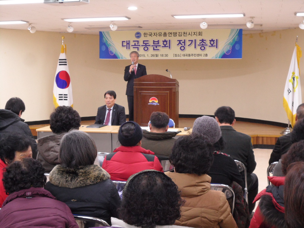 총회에는 자유총연맹 대곡동분회원을 비롯한 김상원 대곡동장, 이선명 시의원, 박희주 시의원, 나영민 시의원 등 50여명이 참석한 가운데 2014년 주요 활동실적 및 결산보고 등 지난 한 해를 되돌아보고, 신입회원 소개 및 금년도 활동방향 제시 등의 순서로 진행됐으며, 한 해 동안 분회활동에 열정적으로 참여한 회원들에 대해 시상하는 시간도 가졌다.