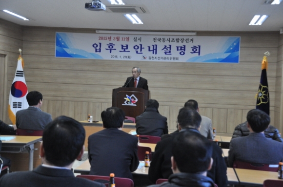김천시 선거관리위원회는 1월27일 대회의실에서 다가오는 3월11일 전국동시조합장선거 입후보자 선거안내 설명회를 가졌다.