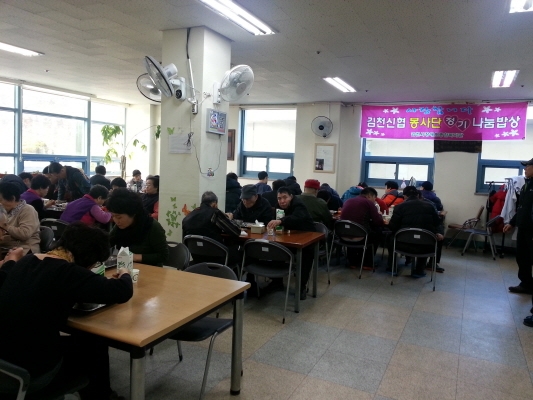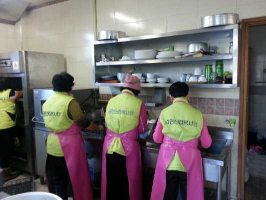 신협봉사단원들은 복지관식당에서 지역장애인들의 건강을 위해 영양가 있고 맛있는 친환경 중식을 제공했다. 아침 일찍 복지관에 도착하여 조리와 배식 도우미, 설거지 등으로 각자 업무분장에 최선을 다하며 역량을 발휘했다.