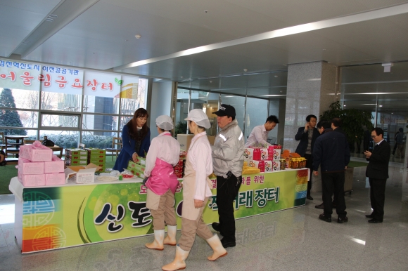 |  | | | ⓒ 김천내일신문 | | 김천시(시장 박보생)는 1월 30일 김천혁신도시 한국도로공사 신사옥에서 어울림 금요장터를 개최했다. 시는 혁신도시 이전공공기관 직원들에게 신선한 지역 농특산물을 홍보하고 우수한 농․특산물을 시중가격 보다 저렴하게 제공해 이전기관과 농가 모두가 활기 넘치는 공동체 육성과 상호 이익을 증대하고자 이 행사를 마련했으며, 또한 우리시 최대 현안인 “15만 인구 회복 운동” 추진의 일환으로 현장에서 전입신고도 대행했다.