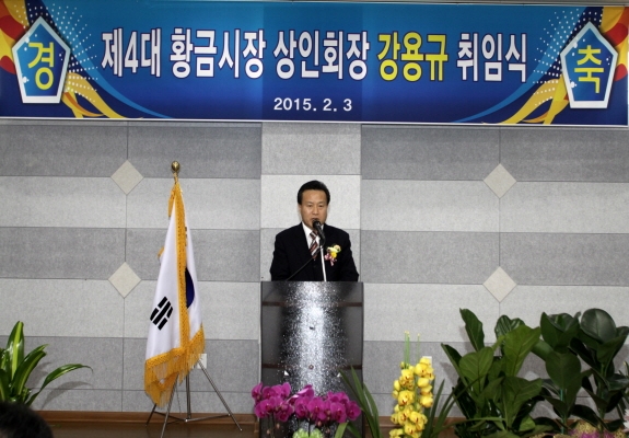 강용규 신임회장은 취임사를 통하여 그동안 우리 시장내에서 있었던 많은 불미스런, 우려스러웠던 일들에 대해 황금시장 상인을 대표하여 김천시민, 황금시장을 이용하시는 고객, 시장의 주변 분들께 깊은 사죄를 한다고 말하고 우리는 지난 1년이라는 중요한 시간을 앞으로 나아가야 함에도 불구하고 서로 알력으로 허비하였고, 가리워져 있던 곪아버린 모든 병폐를 세상에 다 더러내 보였다고 덧붙였다.