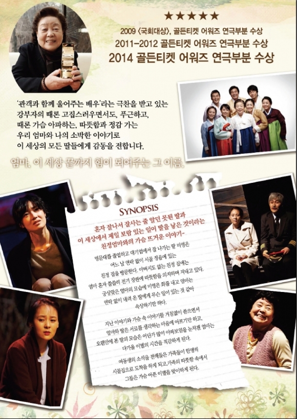 살을 애리는 겨울의 텃텃한 땅을 헤집고 나오는 새싹처럼 가슴을 뭉클하게 하는 그 말, ″엄마, 사랑해″ 그 감동의 순간을 함께 나누고자 한다면 꼭 봐야할 연극이다.