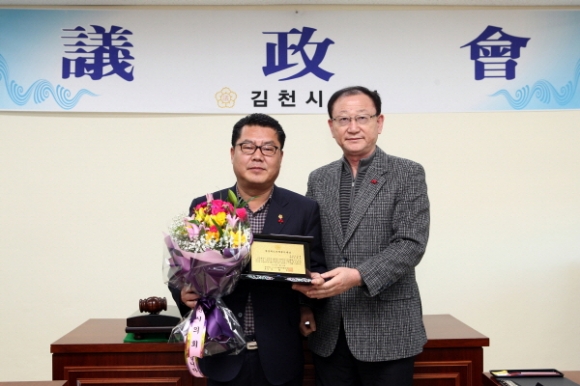 한편 이 날 경상북도 시군의회 의장협의회에서 모범적인 의정활동으로 지방자치발전에 선도적인 역할을 해 온 공적으로 2014년도 경상북도의정봉사대상자로 선정된 김세운 의원에게 의정봉사대상이 전수되어 동료 의원들로부터 많은 축하를 받았다. |