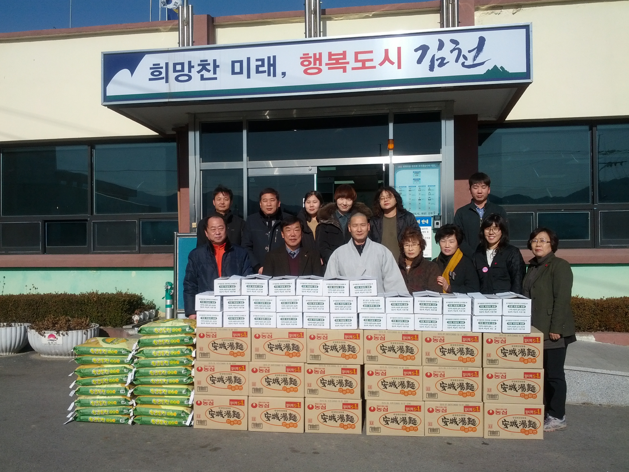 |  | | | ⓒ 김천내일신문 | | 봉산면 ‘용화사(주지 적인스님)’는 지난 2월 12일, 민속 고유의 명설인 설을 앞두고 봉산면 지역 어려운 소외계층에 전해 달라며 백미(20㎏) 18포, 라면 18박스, 떡국떡 30박스 (100만원 상당)를 봉산면사무소에 기탁했다.