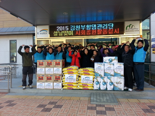 부행댐 관리단은 그동안 면민 복지회관 보수, 경로당 운동기구 및 난방비 지원, 저소득층 주택 수리 등 지역사랑을 이어오고 있으며, 매년 설과 추석 명절에는 부항면 관내 어렵고 힘든 저소득층에 다양한 위문품을 지원해 오고 있다.