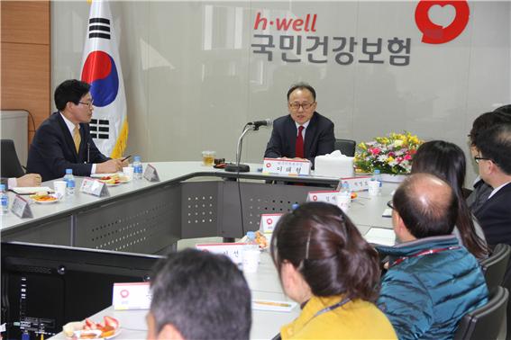 이날 간담회에서 이본부장은 직접 현장에서 건강보험 운영현황을 점검하는 한편, 2015년도 보장성 확대 계획, 금연치료 건강보험 지원사업 및 공단 7대 핵심과제 등 공단의 주요 추진사업에 대해 직원들과 소통하는 시간을 가졌다.