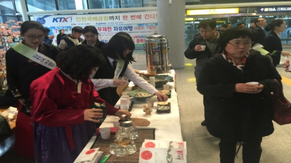 김천(구미)역에서는 지난2월17일부터 22일까지 설날 대수송 기간 중 지역 코레일 실천단과 함께 고향을 찾는 귀성객에게 다과대접, 국악공연 등 다양한 서비스를 제공했다.