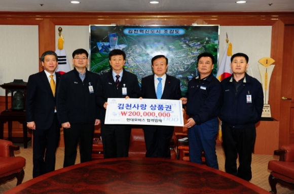 김천시는 2014년 10월 고용창출 및 김천사랑상품권 구매에 솔선수범하여 전통시장 상권활성화에 크게 기여한 공로로 현대모비스 김천공장장(정수경)에게 감사패를 전달했다.