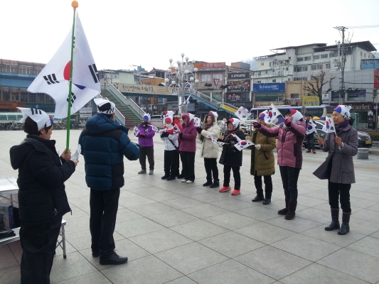 김천역 광장에서 지난3월1일 김천국학원 인성회복국민운동본부 회원들이 제96주년 3.1절기념행사를 개최하였다.