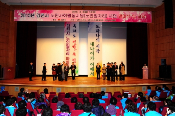 김천시(시장 박보생)는 2015년도 노인사회활동지원사업 통합 발대식을 3월 3일 김천시문화예술회관 대공연장에서 개최하였다.