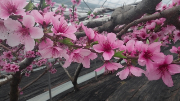 김천시 농소면 노곡리 최봉분(68)씨의 농장 하우스내 복숭아 꽃이 노지보다 1개월 정도 앞당겨 봄의 시작을 재촉하고 있다.