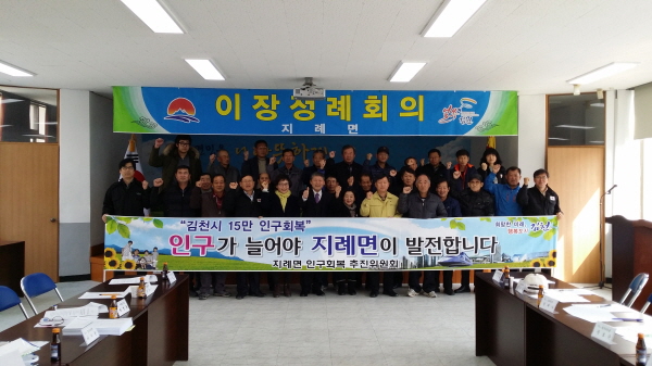 최주섭 지례면장은 “시에서 2015년을 인구회복의 원년의 해로 삼은 만큼 지례면에서도 민관이 한마음이 돼 인구늘리기를 추진하겠으며, 나아가 면 발전과 주민들이 행복한 고장을 만들겠다”며 다짐을 밝혔다.