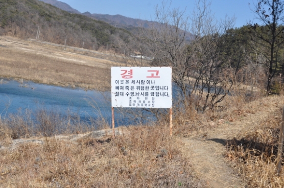 장안보는 깊은 곳은 수심 7-8m로 확인되고 있으며 주변에는 경고표지판 만 설치되어있다.