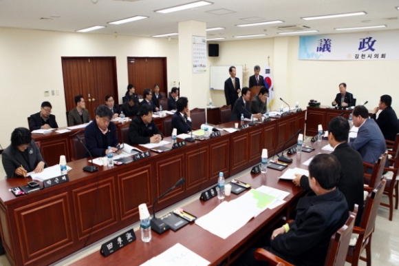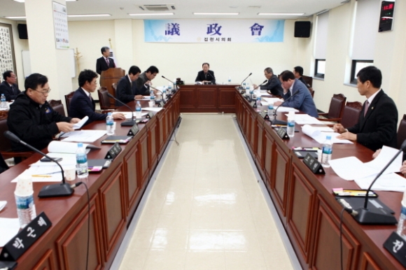 김천시의회(의장 김병철)는 3월12일 의원 17명이 참석한 가운데 3월 의정회를 의원회의실에서 개최했다.