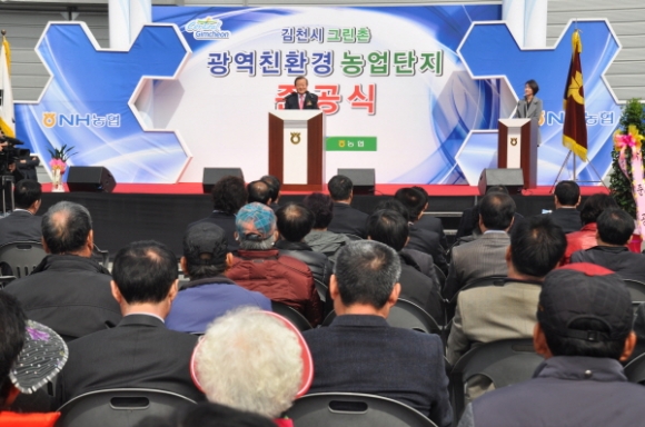 김천시 아포읍 대신리 아포농협(조합장 권순달) 농축산순환자원화 센터에서 3월16일 내빈및 지역주민이 500여명이 참석한 가운데 감천시 그린촌 광역친환경농업단지 준공식을 가졌다.