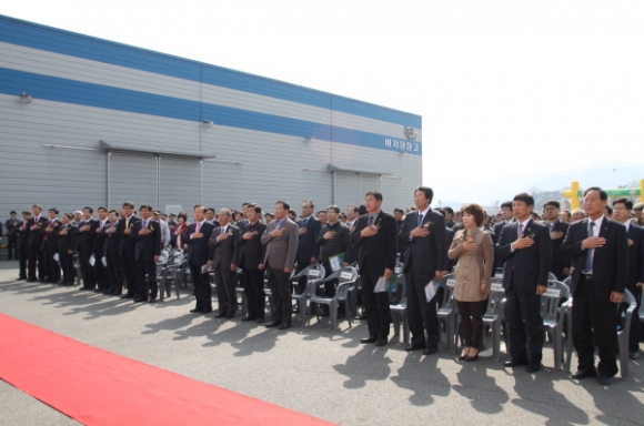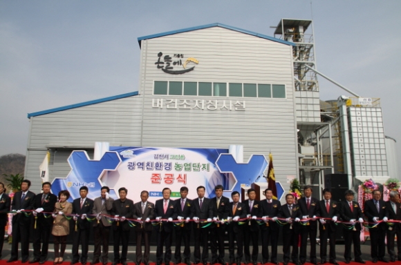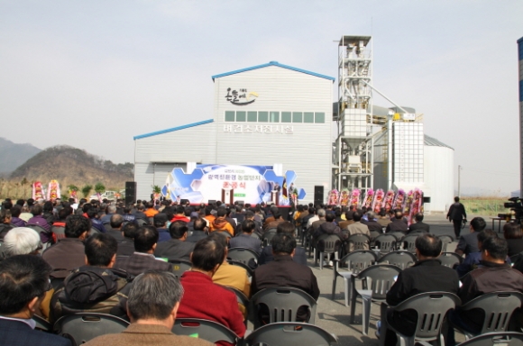 시공업체 관계자, 농협 최주원 직전 전무, 박종환 상무 등 공로자에게 감사패를 수여하고 내빈들의 축사에 이어 부자농촌을 기원하는 떡 자르기,준공을 기념하는 테이프 컷팅식을 마치고 시설견학에 들어갔다.