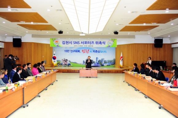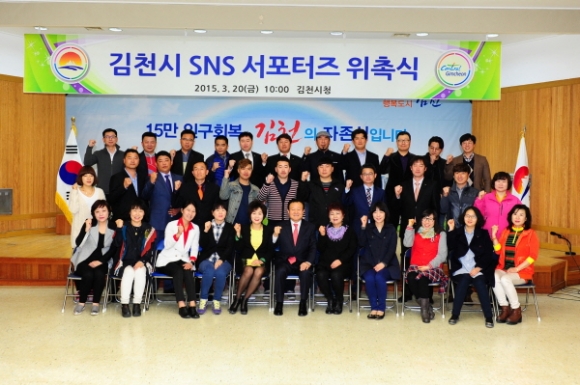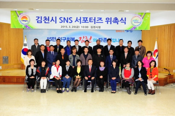 김천시(시장 박보생)는 3월 20일 카카오스토리·페이스북·트위터 등 소셜네트워크서비스(SNS)를 활용해 김천을 적극 알리는데 앞장 설 ‘김천시 SNS 서포터즈’ 위촉식을 개최했다.