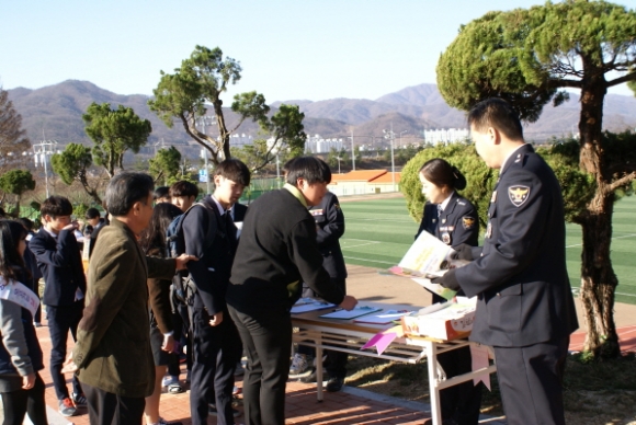 이에 여성청소년과(과장 경정 김강현)에서는 연일 학교폭력 근절을 위해 가진 총력을 쏟아 붓고 있으며 이른 아침 김천생명과학고등학교 정문에서 학생들의 “친구야 사랑해”라고 외치는 고함소리로 학교가 들썩거렸다.