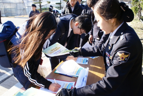 김천경찰서(김훈찬)에서는 신학기 초, 학교폭력이 가장 많이 발생하고 있는 시기에 학교폭력 근절 분위기를 조성하기 위하여 등굣길에서 “친구 사랑해”라는 제목으로 3월23일 서명운동을 펼쳤다.