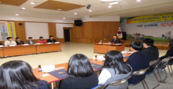 김천시(시장 박보생)는 지난 3월24일 청소년시책의 실효성을 제고하고 청소년문화의집 운영 활성화를 위해 「제10기 청소년참여위원」, 「제3기 청소년운영위원」의 위촉식과 간담회를 개최했다.