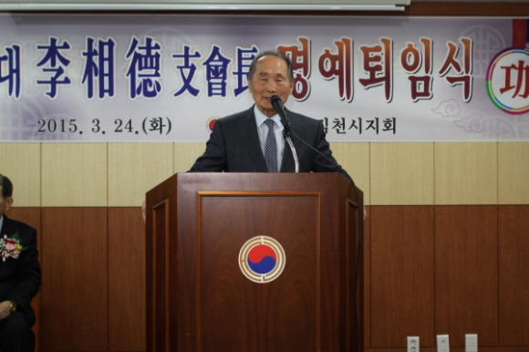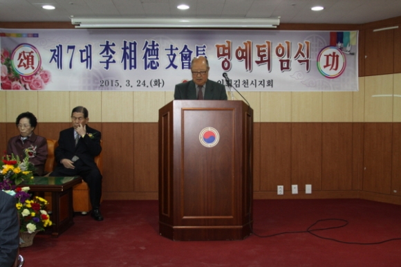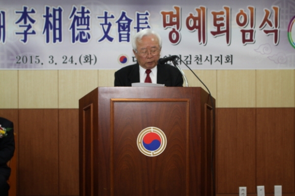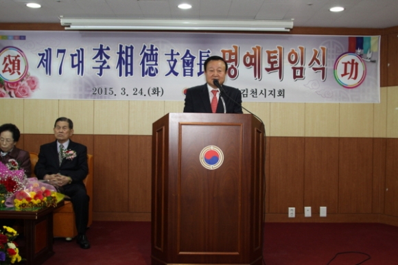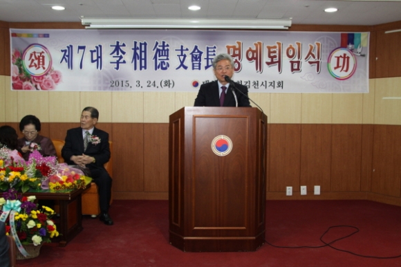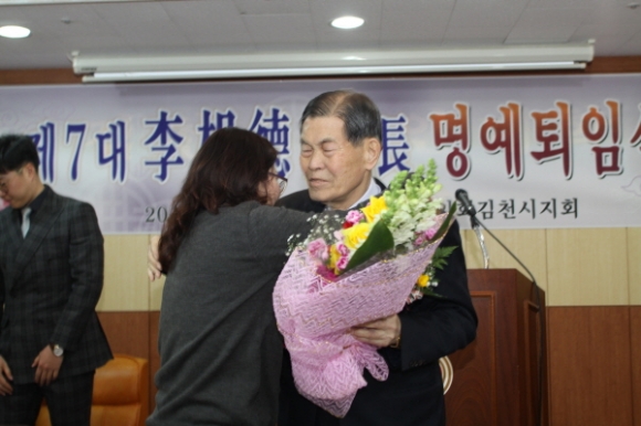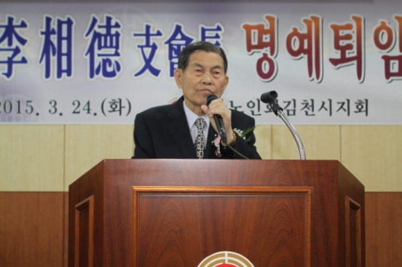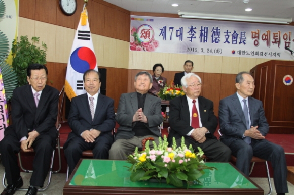 (사) 대한노인회 김천시 지회 노인회관에서는 지난3월24일 가족 친지, 지역대의원 및 사무장 100여명이 참석한 가운데 제7대 이상덕(89) 노인회장 퇴임식을 가졌다.