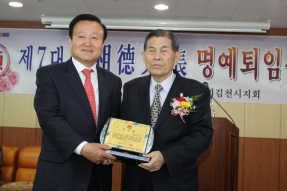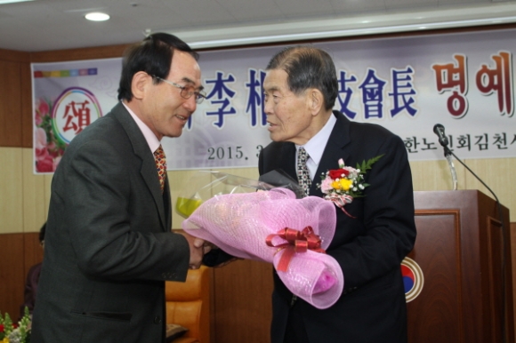 이 회장은 7년 동안 노인회를 탁월한 능력으로 이끌어 온 것을 높이 평가받음에 따라 경상북도 노인연합회 박영일회장, 김천시장, 국회의원의 감사패및 공로패를 수여받았다.
