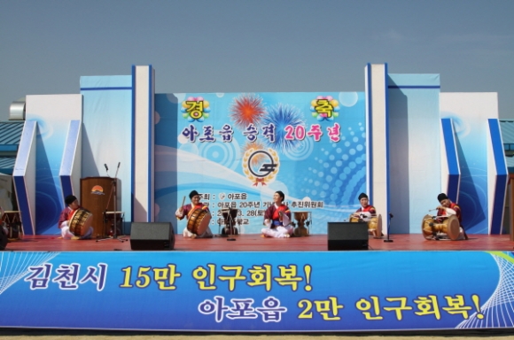 김천시 아포읍(읍장 김병진) 승격 20주년 추진위원회(위원장 정해준)는 아포중학교에서 지난 3월28일 읍민들의 역사적인 상징성을 나타내고 단합과 화합의장을 마련하는 읍 승격20주년 기념식을 성황리에 개최했다.