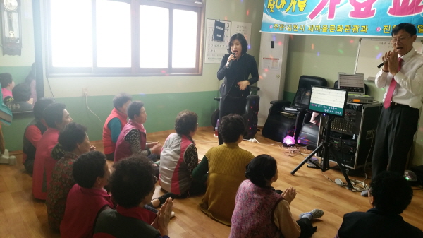 주민들은 강사의 지도에 따라 “섬마을선생님”, “고장난벽시계” 등 좋아하는 가요를 함께 부르고 신곡을 배우며 농번기에 지친 심신의 피로를 풀며 완연한 봄 오후를 즐겼다.