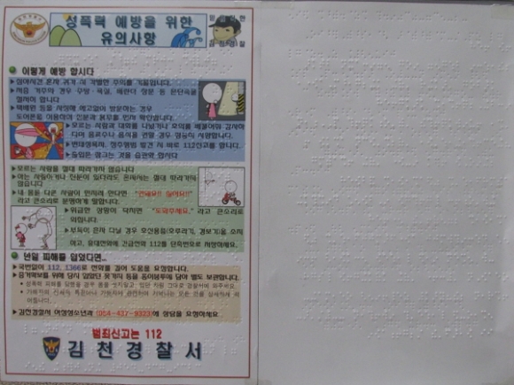 김천경찰서, 성폭력 예방 특수 점자전단지 제작