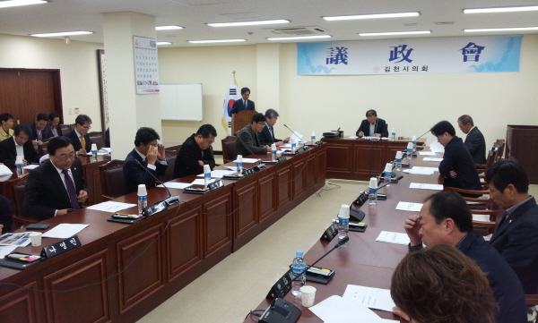 김천시의회(의장 김병철)는 4월7일 의원 16명이 참석한 가운데 4월 의정회를 의회 3층 의원회의실에서 개최했다.