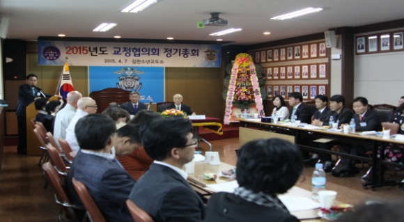 김천소년교도소(소장 홍성천)는 지난4월 7일 청사 2층 대회의실에서 백락광 교정협의회 회장 등 교정위원 50여명이 참석한 가운데 ‘2015년도 교정협의회 정기총회’를 개최하였다.