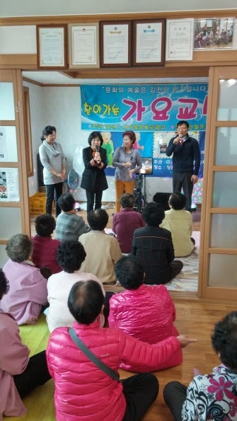 이 날 가요교실에 참석한 어르신들과 주민들은 건일프로덕션 대표 임건일씨의 활기차고 재미난 노래 강습으로 2시간 동안 함께 노래를 부르며 일상생활에서 쌓인 스트레스와 피로를 씻어냈다.