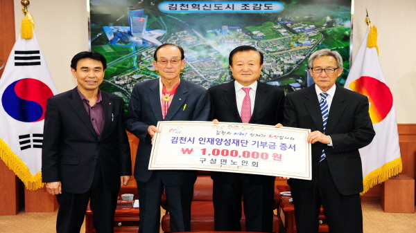 지난 4월 9일 2층 접견실에서 이방화 구성면 노인회장은 “김천시인재양성재단에서 지역 인재 육성을 위해 여러 장학사업을 추진한다는 말을 듣고, 노인회 회원들이 작은 보탬이 되고 싶어 십시일반으로 장학기금을 기탁하게 됐다.”고 말했다.