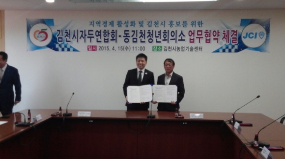 김천자두연합회(회장 양정규)는 지난4월15일 농업기술센터에서 지역경제 활성화 및 김천시 농산물 홍보를 위해 동김천청년회의소와 업무협약을 체결했다.