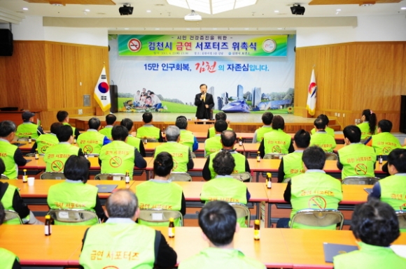 이번 김천시 금연 서포터즈는 읍·면·동의 추전을 받은 지역사회 단체장 및 이·통장, 새마을지도자등으로 구성된 65명으로 금연정책 홍보 및 간접흡연 방지 금연캠페인 등을 수행하며 김천시민의 『건강 지킴이』 노릇을 톡톡히 할 것으로 기대된다.