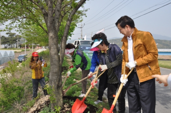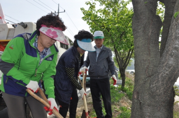조마면 체육회(회장 여상규)는 지난 4월24일 조마면 장암교 주변에서 벚꽃나무 가꾸기 행사를 가졌다.