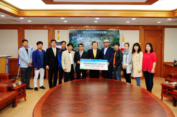 지난 4월 27일 2층 접견실에서 유건상 김천미술협회 회장은 “장학기금 마련을 위하여 4월 17일부터 22일까지 회원 45명의 총100여 작품을 전시하는 미술작품전시회를 개최 했다.”며, “이번 전시회를 통해 마련된 수익금이 어렵게 공부하는 학생들에게 작으나마 힘이 되고 희망이 됐으면 좋겠다.”고 말했다.