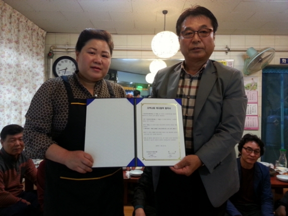 이날 자산동복지협의체(위원장 김갑부)에서는 협약서 체결과 더불어 복지후원식당인“아름다운 맛집”현판을 제작하여 부착하고 “지역사회 복지를 위해 더 많은 자원 제공자가 나타나기를 희망하고 밥집이 더욱 번창하기를 기원한다.”는 격려의 말과 함께 그 고마운 마음을 전했다.