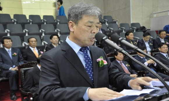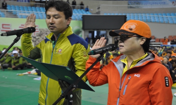 내빈들의 축사에 이어 우승기 전달, 자산동 권혁만 통장과 지좌동 김병숙통장의 선서가 있엇다.