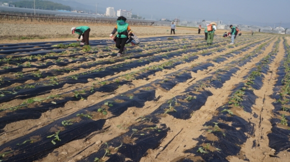 이른 아침부터 고구마식재 작업에 함께한 새마을 남녀지도자 회원들은 지역 주민의 화합과 이웃돕기 등 진정한 봉사단체로서의 역할에 충실하고자 한결 같은 마음으로 백옥동 소재 1,200㎡의 농지를 임대하여 한포기 한포기 정성을 다해 모종을 심었다.