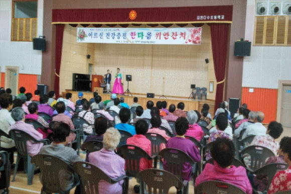 |  | | | ⓒ 김천내일신문 | | 막애사(회장 최연구)는 제43회 어버이날을 맞아 한마음 예술봉사단이 “어르신 건강증진 한마음 위안잔치”를 개최했다고 전했다.