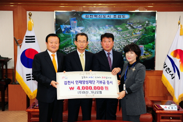 (주)이산 (주)가나오엠, 김천시인재양성재단 후원금 4백만원 쾌척