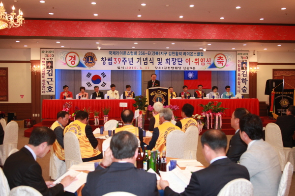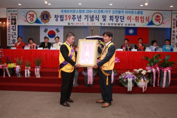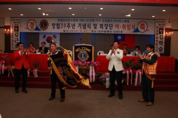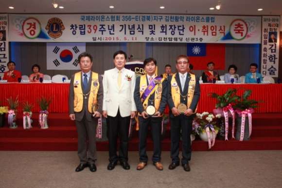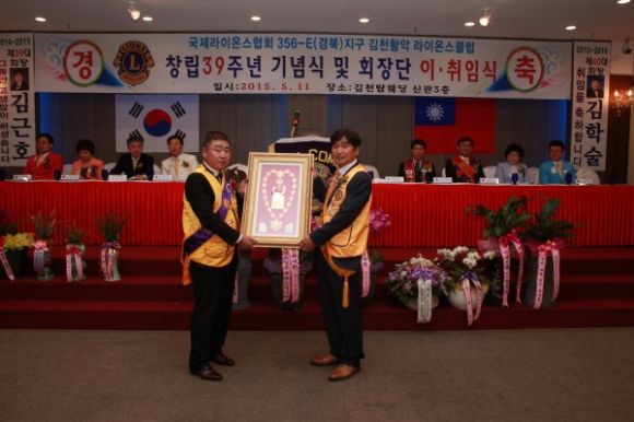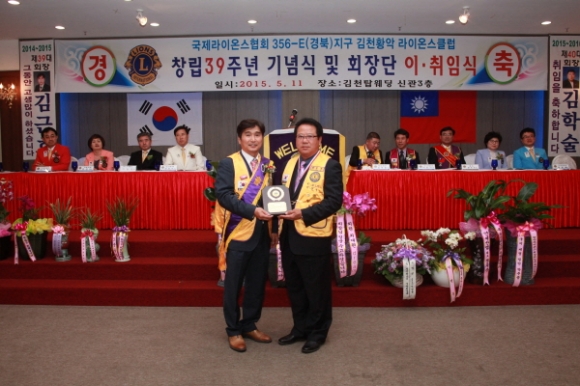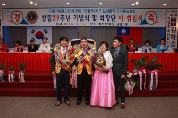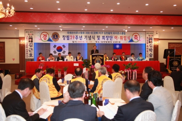 국제라이온스협회 356-E(경북)지구 김천 황악라이온스클럽(회장 김학술)은 지난5월11일 회원및 가족,지인들이 참석한 가운데 탑웨딩에서 “39주년 창립 기념식과 회장단 이취임식”을 가졌다.